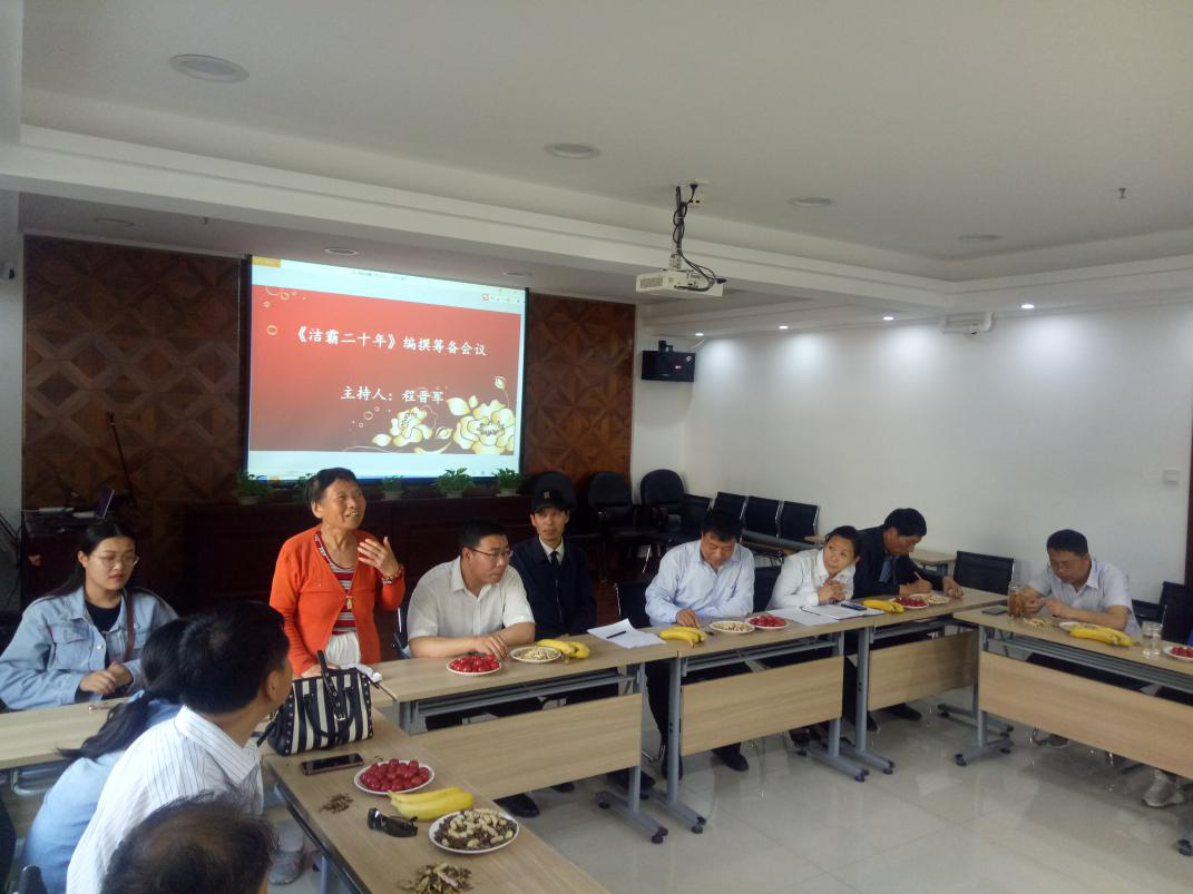 2019年5月17日,公司在會議室召開《潔霸二十年》編撰籌備會議,出席本次會議的有公司的主要領導,部門經(jīng)理、項目經(jīng)理、主管、科員,有部分曾經(jīng)在潔霸工作過的同志,還有個別邀請到的作家等,公司程總主持了本次會議。