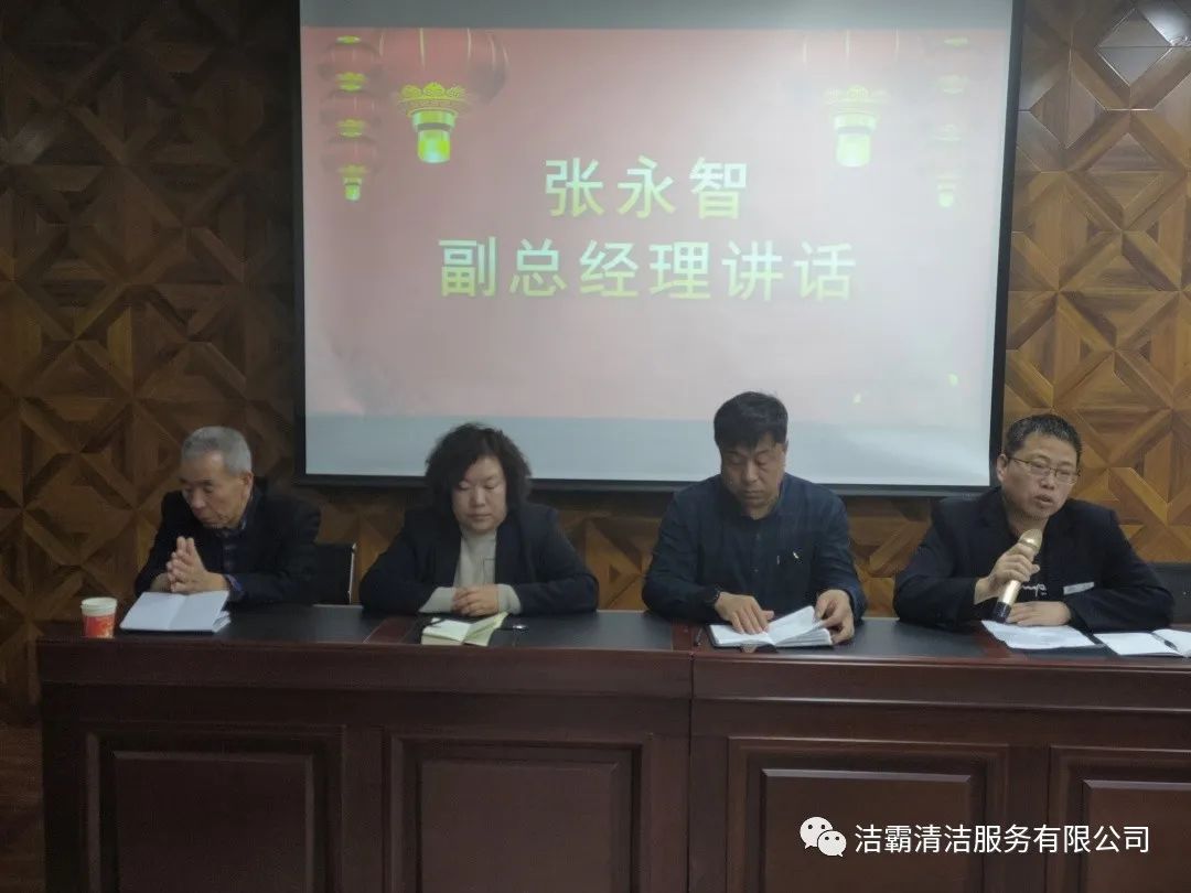最后,公司總經(jīng)理程晉軍作了重要講話,對新的一年里組織架構(gòu)、產(chǎn)教融合、建立洗衣廠、創(chuàng)建勞務(wù)品牌、建立大運營中心、工程部市場化運作、技能培訓(xùn)、提高用工人數(shù)、承包養(yǎng)老院、建立客戶管理系統(tǒng)等十項工作作了安排部署并提出了新的希望。