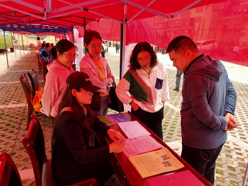招聘活動(dòng)現(xiàn)場(chǎng)氣氛火熱,各個(gè)招聘展臺(tái)前來(lái)咨詢(xún)求職的村民絡(luò)繹不絕。公司支部副書(shū)記張小梅和人事專(zhuān)員宋天嬌熱情地向村民介紹公司情況以及招聘崗位、薪資待遇和工作環(huán)境等,面對(duì)面、“零距離”與村民溝通交流,發(fā)放招聘廣告200余張。其中有不少村民進(jìn)行了登記,初步達(dá)成就業(yè)意向。