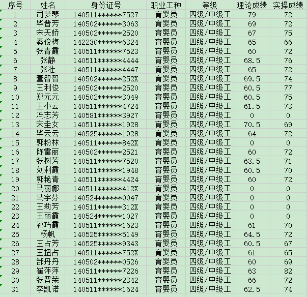2024年9月27日第10批育嬰員中級(jí)認(rèn)定人員成績公示